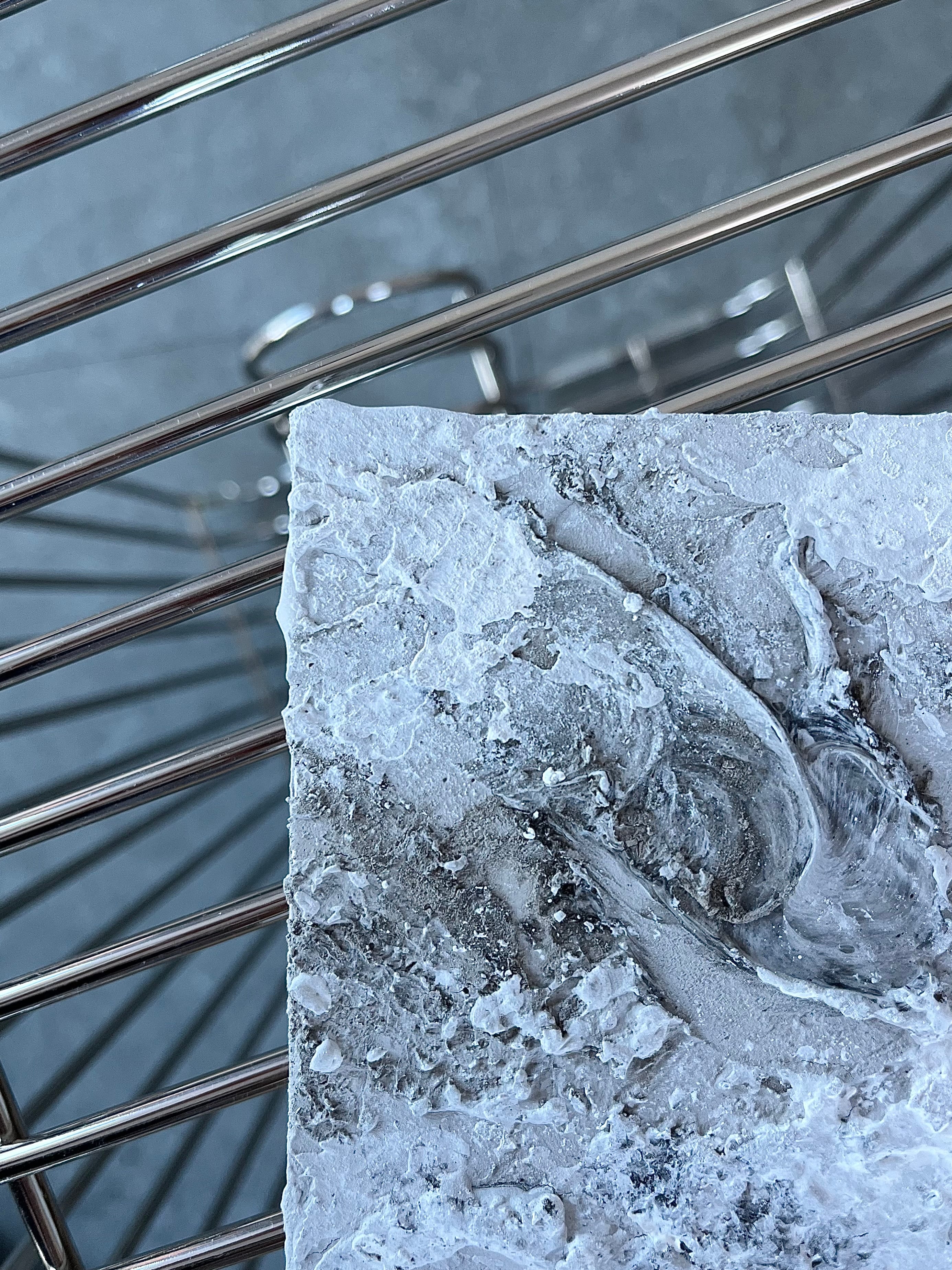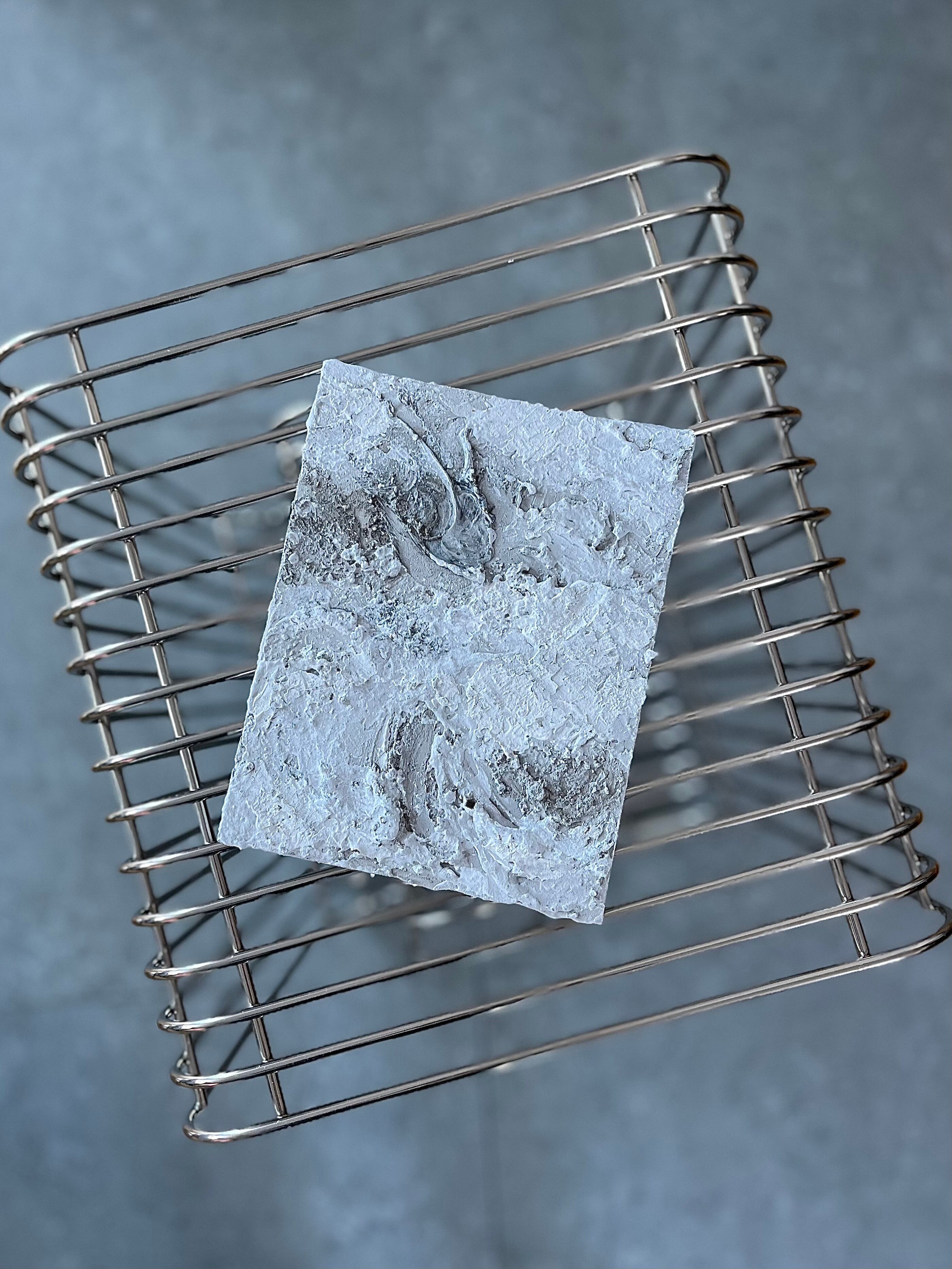 廃棄される石の粉の素材感を生かしながら